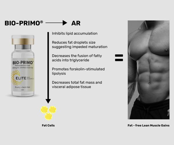 As a DHT derivative, Primo has a high tendency to attach to androgen receptors which promote fat burning in individuals. A 2008 study showed how Primo has a strong affinity with androgen receptors to stimulate fat reduction. Not only does Primo disrupt adipose tissue maturation, it hinders fat cell accumulation, and boost lipolysis by facilitating the release of deposited fat from subcutaneous and visceral adipose tissue stores.
